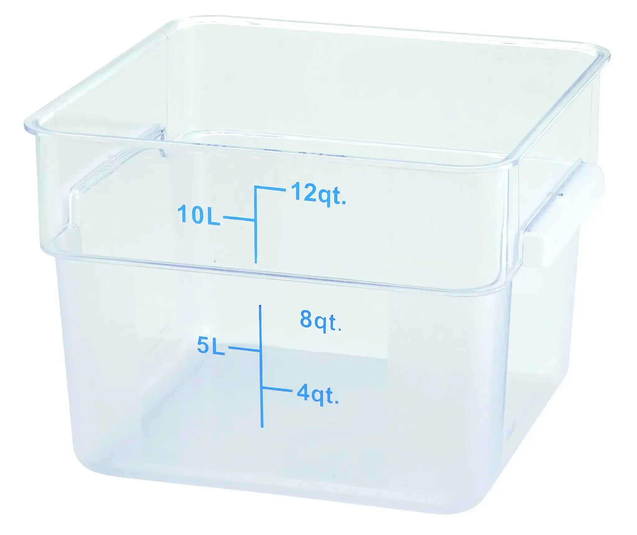 A must-have for any culinary enthusiast is the Winco 12qt Square Storage Container Clear PC. This versatile storage solution is designed to meet the rigorous demands of a professional kitchen, making it an essential addition to any restaurant setting. Crafted from high-quality polycarbonate, the Winco 12qt Square Storage Container offers exceptional durability and clarity. Its clear construction allows for easy identification of contents, reducing the time spent searching for ingredients and ensuring efficient kitchen operations. The 12-quart capacity is perfect for storing a variety of items, from bulk ingredients to prepared dishes, making it a highly practical choice for busy chefs and kitchen staff. The square design of this storage container maximizes space utilization, allowing for more efficient storage in refrigerators, freezers, and pantry shelves. Its stackable nature further enhances space-saving capabilities, helping to keep your kitchen organized and clutter-free. The sturdy construction ensures that the container can withstand the demands of a bustling restaurant environment, providing long-lasting performance. While the model number PCSC-12C may not be the first thing you consider, it signifies the reliability and quality associated with Winco products. This storage container is easy to clean and maintain, ensuring that it remains a hygienic option for food storage. In summary, the Winco 12qt Square Storage Container Clear PC is an indispensable tool for any restaurant. Its robust design, ample capacity, and space-efficient shape make it a valuable asset in maintaining an organized and efficient kitchen.