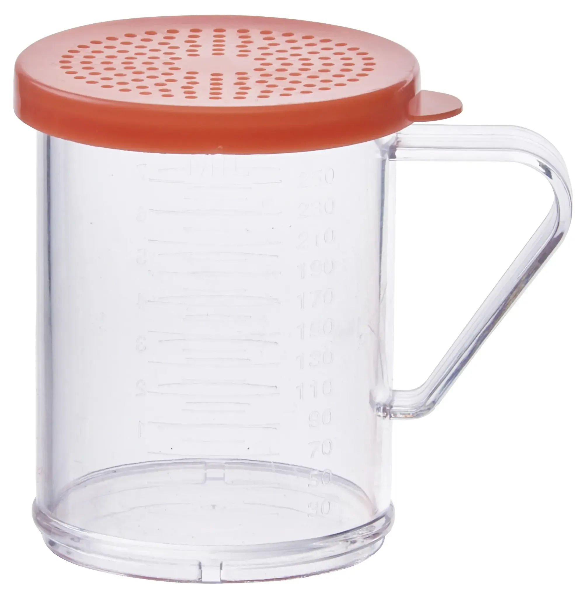Make every meal a masterpiece with the Winco ShakerDredge 10 oz. with Handle. This essential kitchen tool is designed to elevate your restaurant's dining experience by providing a convenient and efficient way to season dishes to perfection. Crafted from durable polycarbonate, the clear body of the ShakerDredge allows for easy identification of contents, ensuring that your staff can quickly and accurately apply the right seasoning every time. The rose snap-on lid not only adds a touch of elegance but also ensures a secure fit, preventing spills and maintaining the freshness of your spices. The 10 oz. capacity is ideal for busy restaurant environments, reducing the need for frequent refills and allowing your kitchen to operate smoothly during peak hours. The ergonomic handle provides a comfortable grip, making it easy for your staff to use the ShakerDredge efficiently, even during the most demanding shifts. NSF certified, the Winco ShakerDredge meets the highest standards of safety and hygiene, giving you peace of mind that you are using a product that is both reliable and compliant with industry regulations. Whether you are sprinkling powdered sugar on desserts, adding a dash of cinnamon to a latte, or seasoning a savory dish, the Winco ShakerDredge 10 oz. with Handle is the perfect tool to enhance the flavor and presentation of your culinary creations. Invest in the Winco ShakerDredge today and see the difference it makes in your restaurant's kitchen efficiency and food quality.