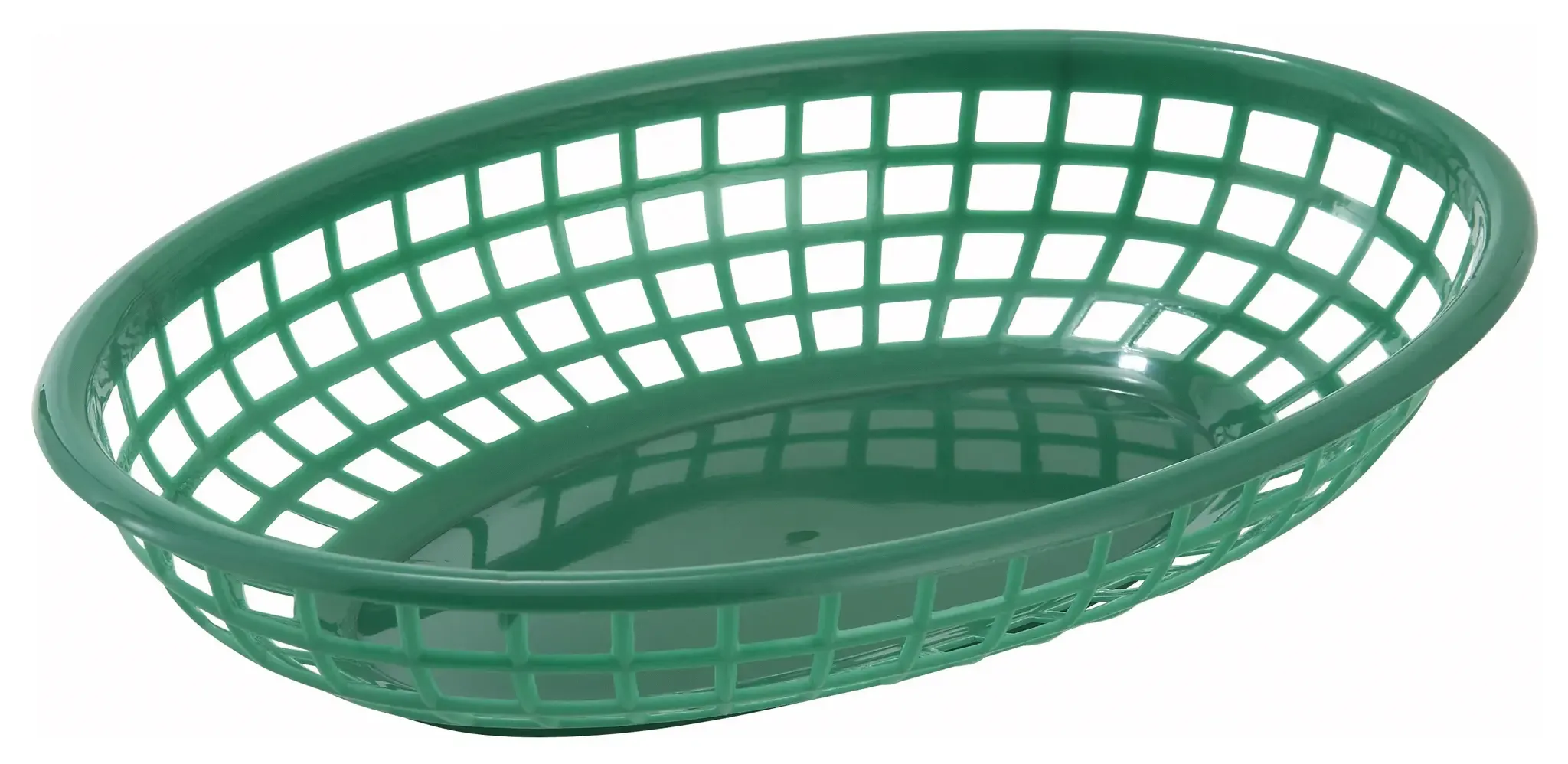 Crafted from BPA-free poly plastic, the Winco Fast Food Basket ensures safety and durability, making it an ideal choice for serving a variety of fast food items. Its dimensions of 9-12 x 5 x 2H inches provide ample space for generous portions, whether you're serving burgers, fries, or other popular menu items. The oval shape not only enhances the aesthetic appeal but also optimizes space on your serving trays and tables.