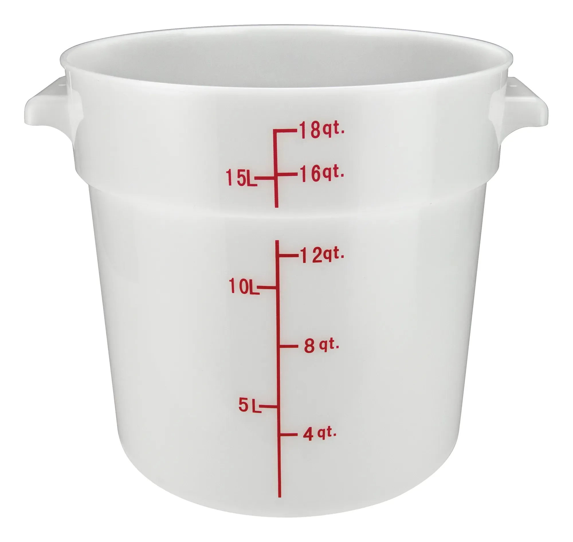The 18-quart capacity of the Winco 18qt Round Storage Container provides ample space for storing a variety of ingredients, from dry goods to prepared foods. Its round shape is not only space-efficient but also allows for easy stirring and mixing, ensuring that your kitchen operations run smoothly and efficiently. The white color of the container offers a clean and professional appearance, seamlessly blending into any kitchen decor.