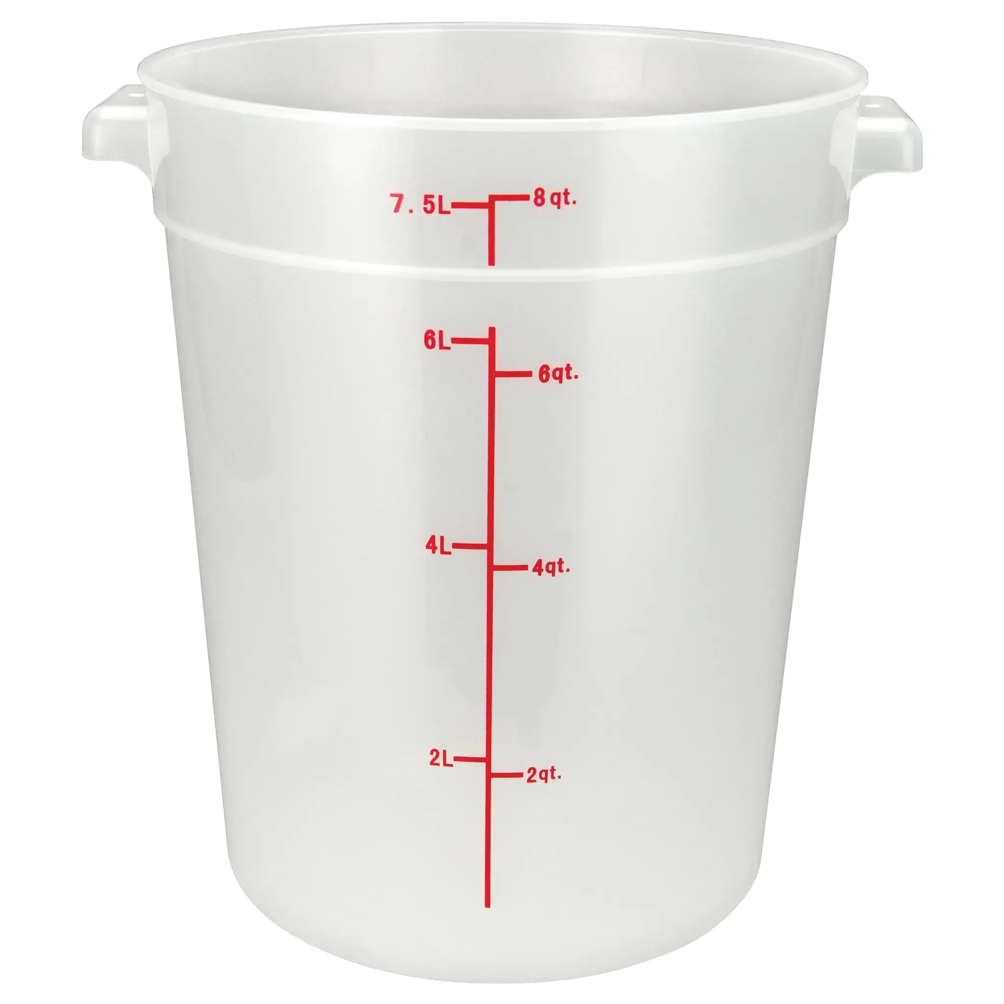 Add a touch of professionalism to the kitchen with the Winco 8qt Round Storage Container. Crafted from translucent polypropylene (PP), this storage solution is designed to meet the rigorous demands of a bustling restaurant environment. The 8-quart capacity offers ample space for storing a variety of ingredients, from fresh produce to prepared sauces, ensuring your kitchen remains organized and efficient. The translucent design of the Winco 8qt Round Storage Container allows for easy identification of contents without the need to open the lid, saving valuable time during busy service hours. Its durable polypropylene construction ensures that it can withstand the daily wear and tear of a commercial kitchen, providing long-lasting reliability. Incorporating the Winco 8qt Round Storage Container into your kitchen setup not only enhances organization but also promotes food safety. The container is designed to keep ingredients fresh and protected, reducing the risk of contamination. Its round shape makes it easy to clean, ensuring that hygiene standards are maintained effortlessly. While the model number PTRC-8 may not be the focal point, it signifies the quality and dependability associated with Winco products. This storage container is an essential addition to any professional kitchen, offering both functionality and durability. Elevate your kitchen's efficiency and maintain a high standard of food storage with the Winco 8qt Round Storage Container. Its practical design and robust construction make it an indispensable tool for chefs and kitchen staff alike.