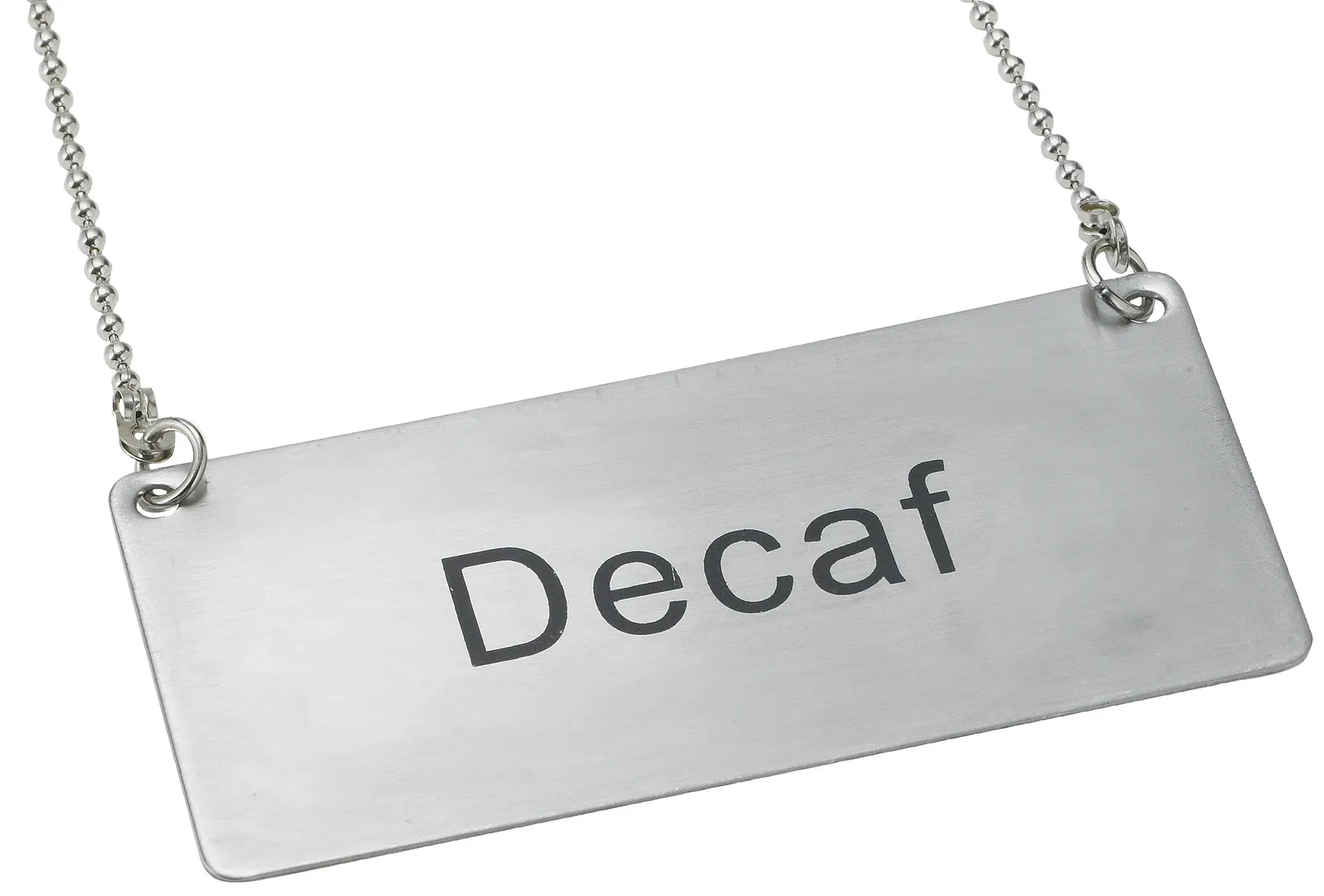 Experience the perfect blend of form and function with the Winco Beverage Chain Sign Decaf. Designed specifically for the bustling environment of a restaurant, this sign ensures that your decaffeinated beverage options are clearly marked and easily identifiable. Measuring 3-12L x 1-34W, the sign is the ideal size to be noticeable without being obtrusive, making it a seamless addition to your beverage station. Crafted from high-quality stainless steel, the Winco Beverage Chain Sign Decaf is both durable and stylish. The 12-inch chain provides ample length to hang the sign securely, whether it’s on a coffee urn, dispenser, or any other beverage container. This ensures that your staff and customers can quickly and easily identify decaf options, enhancing the overall efficiency and experience in your restaurant. The model SGN-202 is a testament to Winco’s commitment to quality and practicality. While the model number may not be the first thing your customers notice, it signifies the reliability and thoughtful design that Winco products are known for. This sign is not just a functional tool but also a subtle touch of professionalism that complements the aesthetic of any restaurant setting. Incorporate the Winco Beverage Chain Sign Decaf into your establishment and see the difference it makes in both service and presentation. It’s a small investment that yields significant returns in customer satisfaction and operational smoothness.