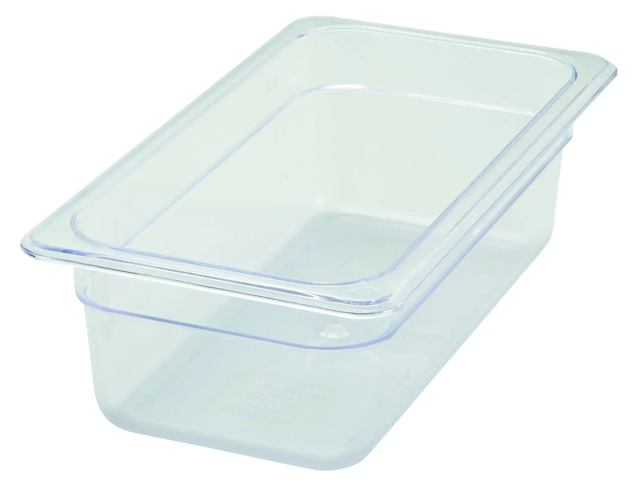 Streamline food preparation with the Winco Poly-Ware Food Pan. Designed to meet the rigorous demands of a bustling restaurant kitchen, this food pan is an essential addition to your culinary arsenal. With its robust specifications, the Poly-Ware Food Pan is built to handle a wide range of temperatures, from a chilly -40°F to a scorching 210°F, making it perfect for both cold storage and hot food preparation. Crafted from break-resistant polycarbonate, this food pan is not only durable but also dishwasher safe, ensuring easy and efficient cleaning after a busy service. The pan measures 13 size 12-58 x 6-78 and boasts a depth of 3-12, providing ample space for storing and organizing ingredients, prepped foods, or leftovers. The Winco Poly-Ware Food Pan is NSF certified, guaranteeing that it meets the highest standards for public health protection. This certification is crucial for maintaining a hygienic kitchen environment, giving you peace of mind that your food storage solutions are safe and reliable. While the model number SP7304 may not be the first thing you consider, it signifies the quality and reliability that Winco products are known for. This food pan is a testament to Winco's commitment to providing top-notch kitchenware that stands up to the demands of professional use. Incorporate the Winco Poly-Ware Food Pan into your kitchen setup and experience the convenience and durability that professional chefs rely on. Whether you're prepping, storing, or serving, this food pan is designed to make your kitchen operations smoother and more efficient.