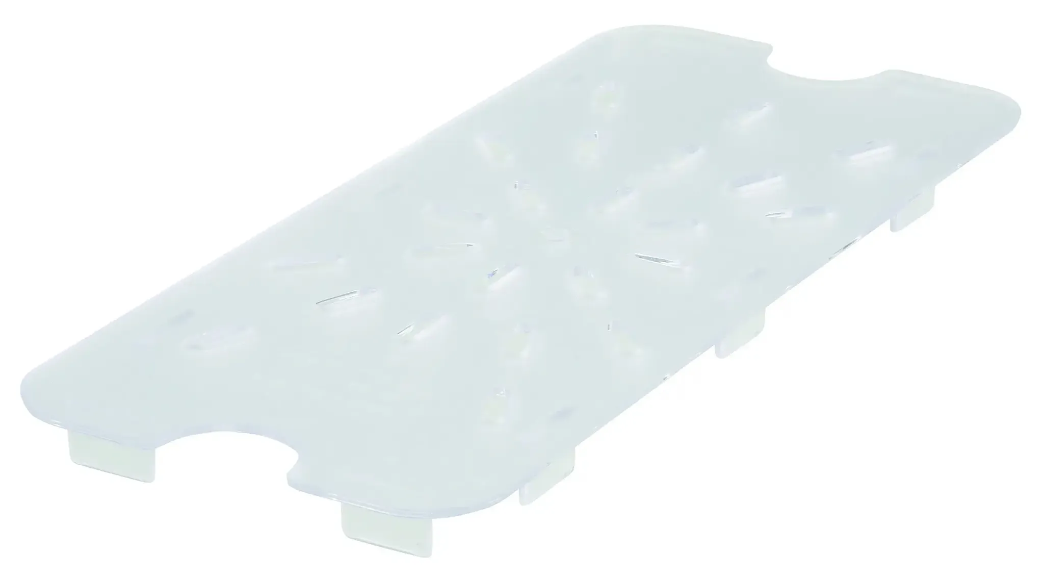Elevate culinary tools with the Poly-Ware Drain Shelf from Winco. Designed to fit third-size food pans, this essential kitchen accessory measures 10-14 x 4-716 inches, making it a perfect fit for 13-size food pans. Crafted from durable polycarbonate, the Poly-Ware Drain Shelf ensures longevity and reliability in a bustling restaurant environment. The Poly-Ware Drain Shelf is NSF certified, guaranteeing it meets the highest standards for public health protection. This certification is crucial for maintaining a hygienic kitchen, as it ensures the product is easy to clean and resistant to food stains and odors. The polycarbonate material is not only robust but also transparent, allowing for easy monitoring of food items. Incorporating the Poly-Ware Drain Shelf into your kitchen setup enhances food safety by allowing excess liquids to drain away, keeping food fresh and preventing sogginess. This feature is particularly beneficial for restaurants that prioritize the quality and presentation of their dishes. While the model number SP73DS may not be the focal point, it signifies the specific design and fit of this drain shelf, ensuring compatibility with your existing kitchen equipment. This attention to detail underscores Winco's commitment to providing practical and efficient solutions for professional kitchens. In summary, the Poly-Ware Drain Shelf from Winco is an indispensable tool for any restaurant aiming to maintain high standards of food quality and hygiene. Its durable construction, perfect fit, and NSF certification make it a reliable choice for enhancing your kitchen operations.