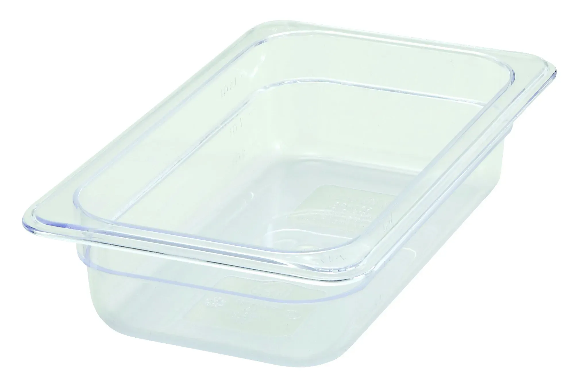 Designed for durability and easy to use with the Winco Poly-Ware Food Pan, this essential kitchen tool is perfect for any restaurant setting. The SP7402 model boasts impressive specifications, making it a reliable choice for food storage and preparation. With a size of 14 x 10-14 x 6-14.2-12 deep, this food pan offers ample space for a variety of ingredients, ensuring your kitchen runs smoothly and efficiently. Constructed from break-resistant polycarbonate, the Winco Poly-Ware Food Pan is built to withstand the rigors of a busy kitchen. Its temperature range of -40°F to 210°F makes it versatile enough to handle both hot and cold foods, providing flexibility in your food storage solutions. Additionally, this food pan is dishwasher safe, ensuring easy cleanup and maintenance, which is crucial in a fast-paced restaurant environment. The Winco Poly-Ware Food Pan is also NSF certified, guaranteeing that it meets strict standards for public health protection. This certification is particularly important in a restaurant setting, where food safety is paramount. The pan's clear design allows for easy visibility of contents, helping kitchen staff quickly identify and access ingredients. In summary, the Winco Poly-Ware Food Pan (Model SP7402) is an indispensable addition to any restaurant kitchen. Its robust construction, wide temperature range, and ease of cleaning make it a practical and reliable choice for food storage and preparation. Invest in the Winco Poly-Ware Food Pan to enhance your kitchen's efficiency and ensure the highest standards of food safety.