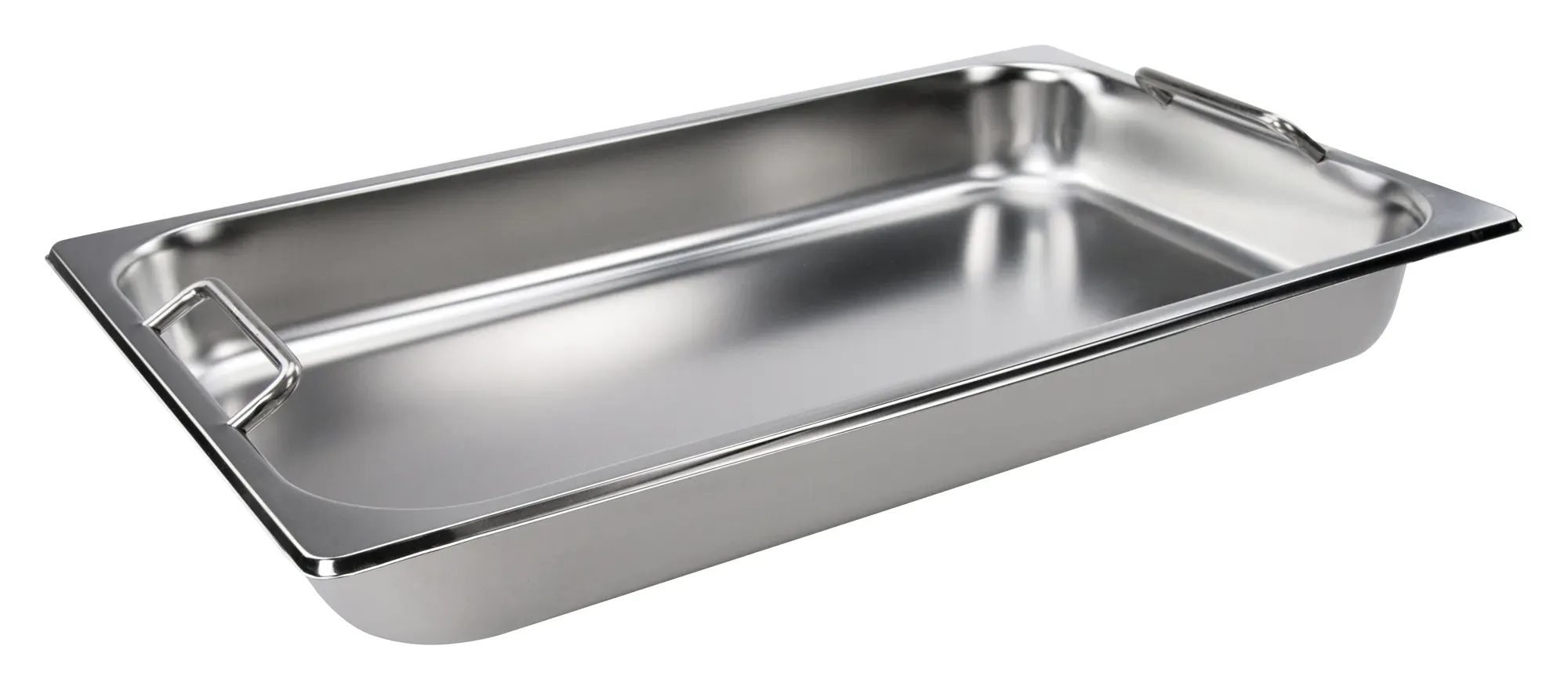 The Get-A-Grip Chafing Dish Pan features a 2-deep design, providing ample space for a variety of dishes, from hearty entrees to delectable sides. Its full-size capacity makes it ideal for serving large groups, ensuring that your guests are always satisfied. The integrated handles offer a secure grip, making it easy to transport the pan from the kitchen to the buffet line or dining area with confidence and ease.