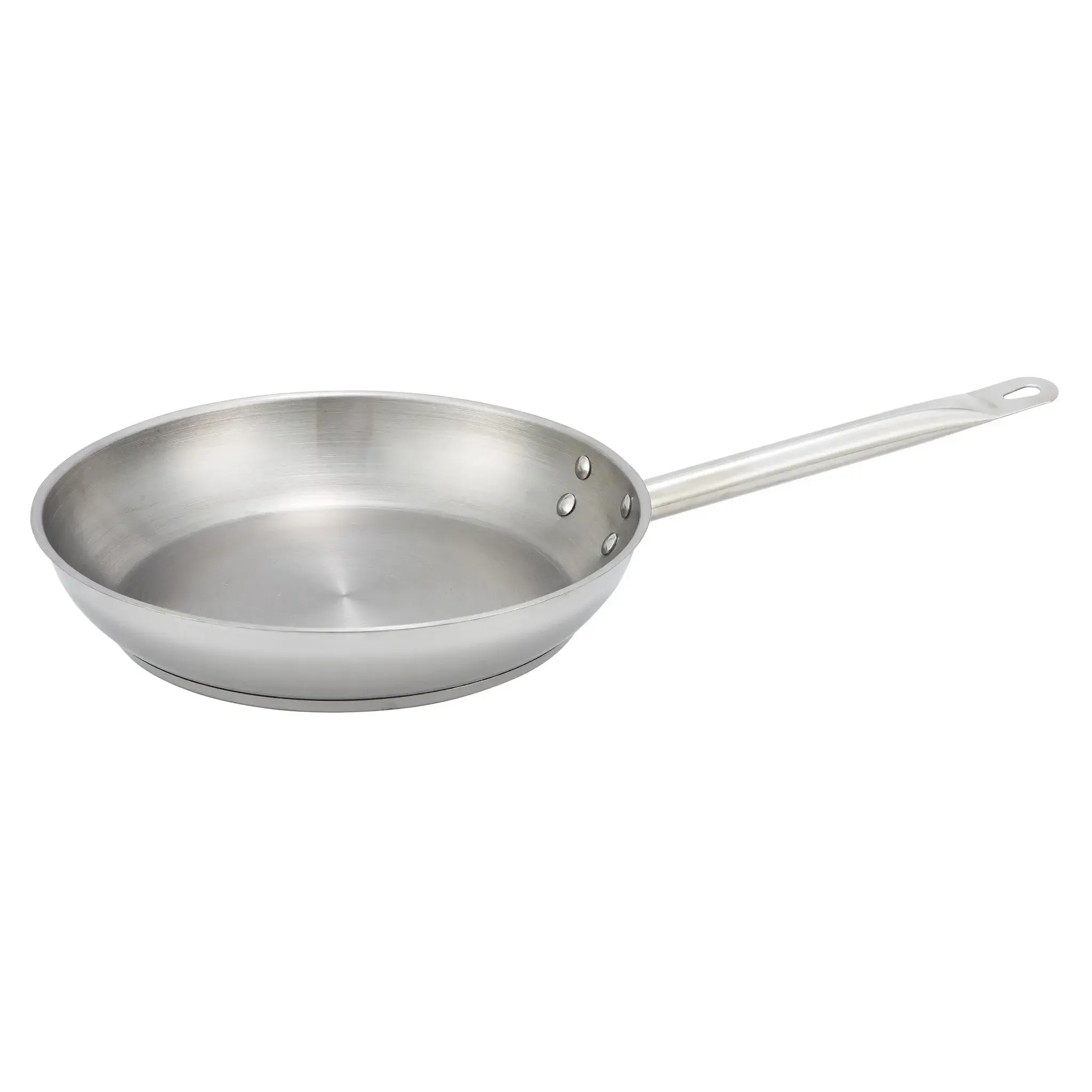 Innovatively designed using top-tier materials, the Winco Premium Fry Pan is an essential addition to any professional kitchen. With an 11-inch diameter and a 2-inch depth, this fry pan offers ample space for a variety of cooking tasks, from sautéing vegetables to searing meats. The tri-ply heavy-duty bottom, featuring an aluminum core, ensures even heat distribution and superior cooking performance, making it ideal for high-demand restaurant environments. Crafted from 18/8 stainless steel, the Winco Premium Fry Pan is not only durable but also induction ready, providing versatility across different cooking surfaces. The riveted handle offers a secure and comfortable grip, allowing chefs to maneuver the pan with ease and confidence, even during the busiest service hours. NSF certified, this fry pan meets the highest standards for public health protection, ensuring that your kitchen maintains its commitment to safety and quality. The robust construction and premium materials make the Winco Premium Fry Pan a reliable choice for chefs who demand the best in their culinary tools. Whether you're running a bustling restaurant or a cozy café, the Winco Premium Fry Pan (Model: SSFP-11) is designed to withstand the rigors of a professional kitchen while delivering exceptional cooking results. Elevate your kitchen's performance with this indispensable piece of cookware.
