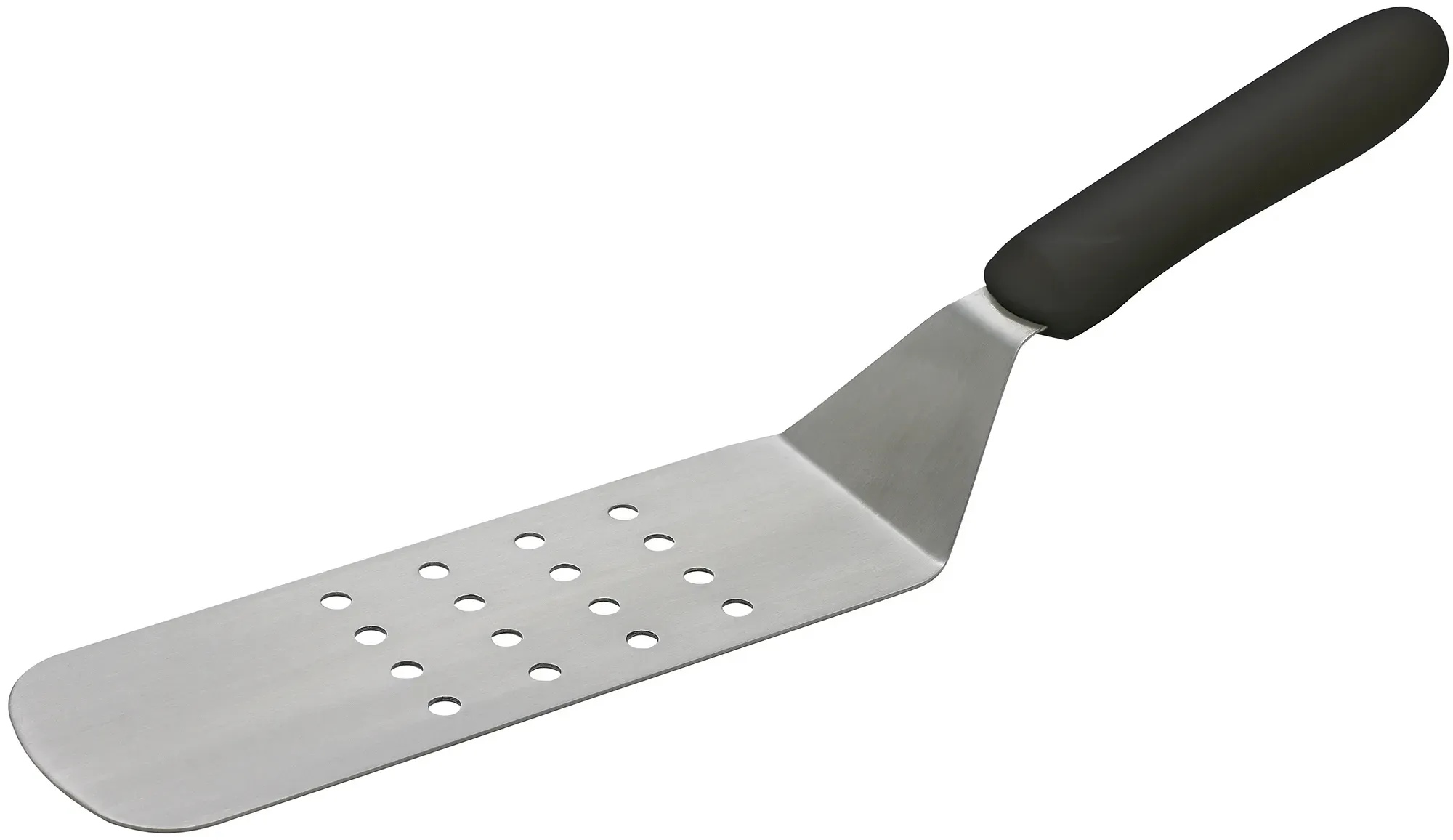 Designed for durability and easy to use with the demands of a bustling restaurant kitchen, the Winco Offset Turner is an essential tool for any culinary professional. Featuring an 8-1/4 x 2-7/8 inch stainless steel perforated blade, this turner is perfect for flipping, turning, and serving a variety of foods with ease. The perforated design allows for efficient draining of excess oils and liquids, ensuring your dishes are presented perfectly every time. The blade's offset and flexible nature provides superior maneuverability, making it ideal for delicate tasks such as handling fish fillets or crepes. The satin finish not only adds a touch of elegance but also ensures easy cleaning and maintenance. Equipped with a slip-resistant polypropylene black handle, the Winco Offset Turner offers a secure and comfortable grip, even during extended use. This handle is also dishwasher safe, making cleanup a breeze and ensuring that the turner is always ready for the next service. Certified by NSF, this turner meets the highest standards for public health protection, giving you peace of mind in a professional kitchen environment. While the model number TKP-91 may not be the first thing you look for, it signifies the quality and reliability that Winco products are known for. In summary, the Winco Offset Turner is a versatile and indispensable tool for any restaurant kitchen, combining functionality, durability, and ease of use to help you deliver exceptional culinary results.