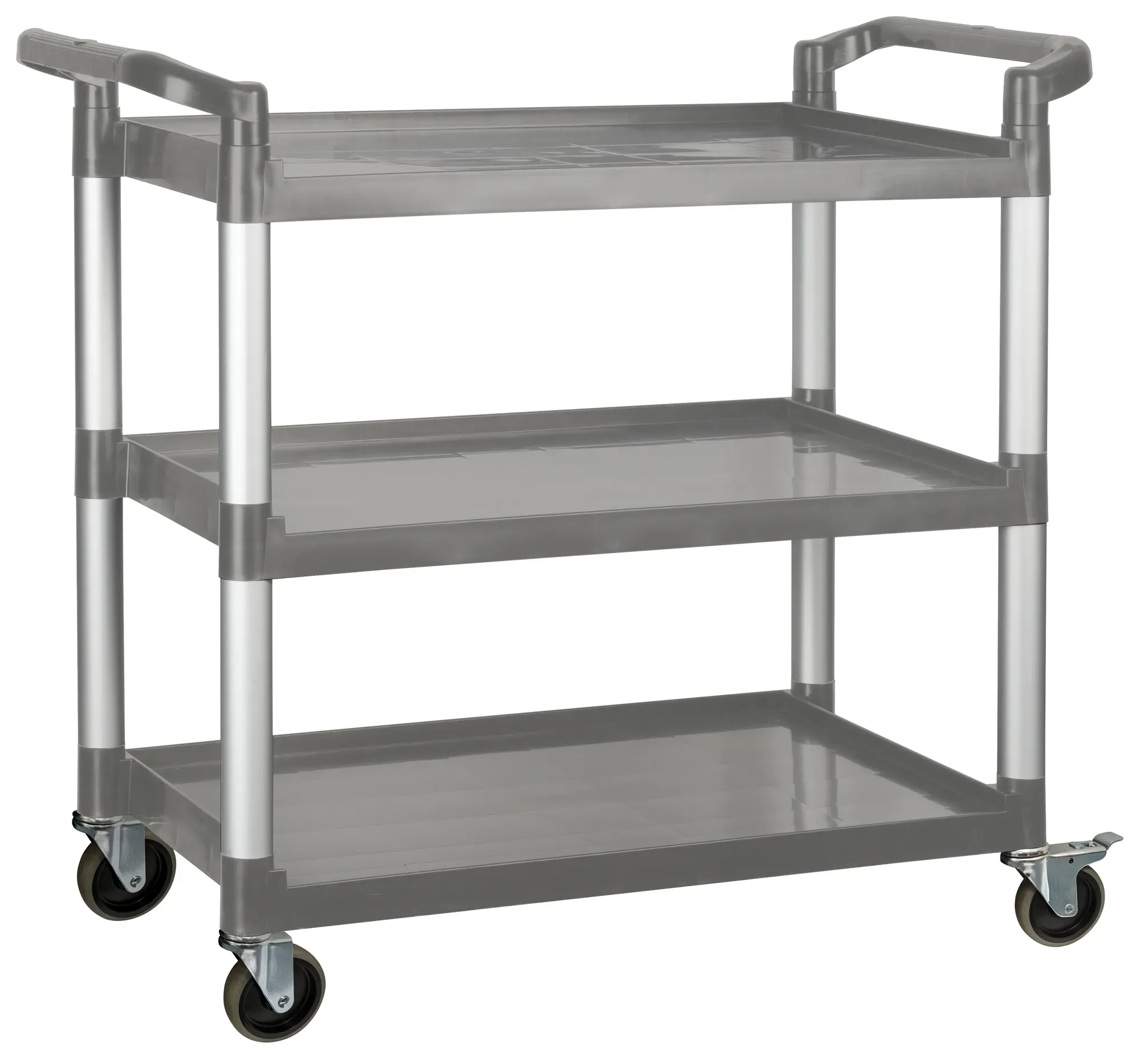 The ultimate tool for gourmet cooking is the Winco Plastic Utility Cart. Designed to meet the rigorous demands of a bustling restaurant environment, this versatile cart is an essential addition to any kitchen or dining area. With dimensions of 40-34L x 19-12W x 37-38H, it offers ample space and stability for transporting a variety of items, from ingredients and utensils to prepared dishes and cleaning supplies. Featuring a robust three-tier design, the Winco Plastic Utility Cart ensures that you can organize and access your essentials with ease. Each tier provides generous storage capacity, allowing you to maximize efficiency and maintain a clutter-free workspace. The gray color adds a sleek, professional touch that seamlessly blends with any restaurant decor. Constructed from durable plastic, this utility cart is built to withstand the daily wear and tear of a high-traffic kitchen. Its sturdy construction ensures long-lasting performance, while the lightweight design makes it easy to maneuver, even when fully loaded. The ergonomic handle and smooth-rolling wheels further enhance its functionality, allowing staff to transport items effortlessly and safely. While the model number UC-3019G may not be the first thing you consider, it signifies the quality and reliability that Winco is known for. This utility cart is not just a piece of equipment; it' s a reliable partner in your restaurant' s success, helping you maintain a seamless and efficient operation. Incorporate the Winco Plastic Utility Cart into your restaurant today and experience the difference it makes in your daily operations.