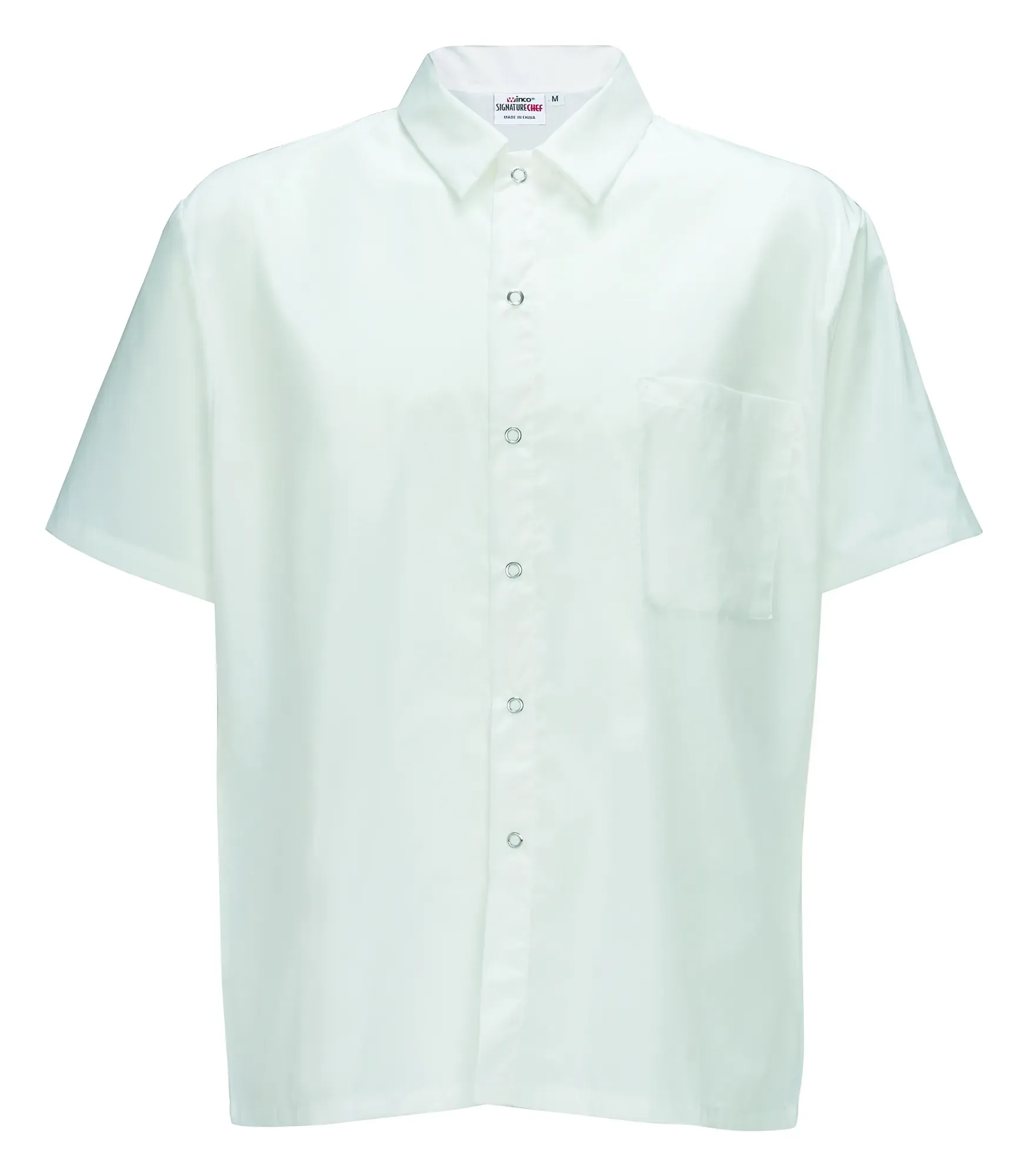 Simplify cooking processes with the Broadway Chef Shirt from Winco. Designed for the demanding environment of a professional kitchen, this short-sleeved chef shirt combines functionality and comfort, making it an essential addition to your restaurant's uniform lineup. Crafted from a durable 65/35 poly-cotton blend, the Broadway Chef Shirt ensures breathability and resilience, standing up to the rigors of daily use. The Signature Chef white color not only presents a clean, professional appearance but also complements any kitchen decor. The 3XL size ensures a comfortable fit for larger chefs, allowing them to move freely and perform their tasks efficiently. The shirt features convenient snap buttons, making it easy to put on and take off, which is particularly useful during busy shifts. A single chest pocket provides a handy spot for storing pens, thermometers, or small notepads, keeping essential tools within easy reach. While the model number UNF-1W3XL may not be the first thing you consider, it signifies the quality and reliability associated with Winco products. This chef shirt is designed to meet the high standards of professional kitchens, ensuring your staff looks sharp and feels comfortable throughout their shift. In summary, the Broadway Chef Shirt from Winco is a practical and stylish choice for any restaurant. Its blend of durability, comfort, and professional appearance makes it an invaluable part of your kitchen team’s attire.