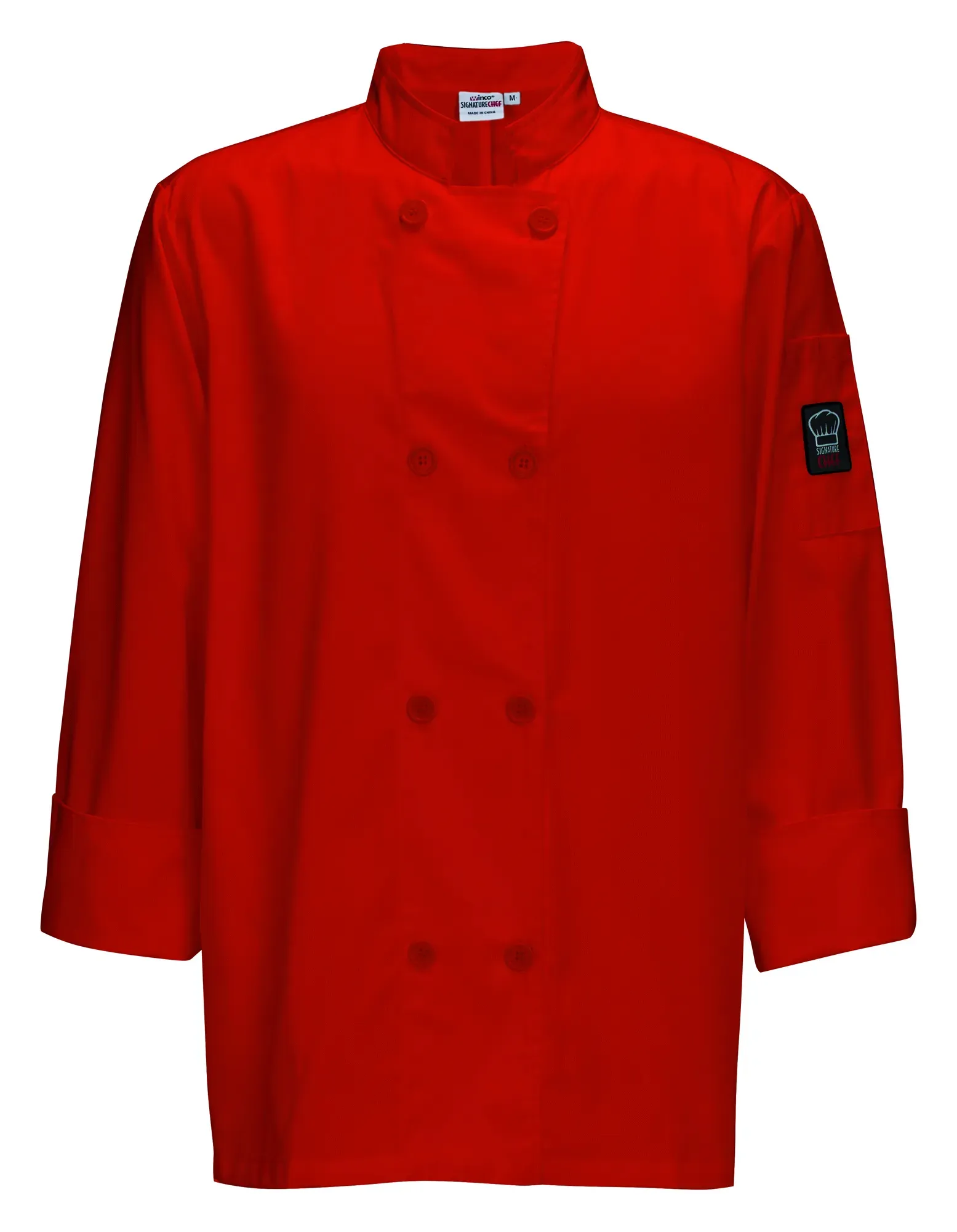 Simplify kitchen tasks with the SignatureChef Tapered Chef Mens Jacket Red XL from Winco. Designed specifically for the demanding environment of a professional kitchen, this chef jacket combines both style and functionality to keep you comfortable and looking sharp throughout your shift.