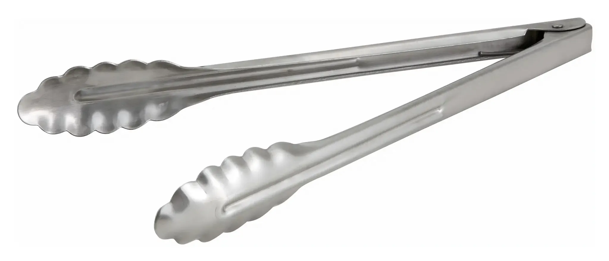 The scalloped edge of the Winco Utility Tongs offers a secure grip, allowing chefs to effortlessly turn, lift, and serve food without slipping. This feature is particularly beneficial when dealing with slippery or delicate items, such as pasta or seafood. The robust construction of these tongs ensures they can withstand the rigors of daily use in a busy kitchen, maintaining their performance and appearance over time.