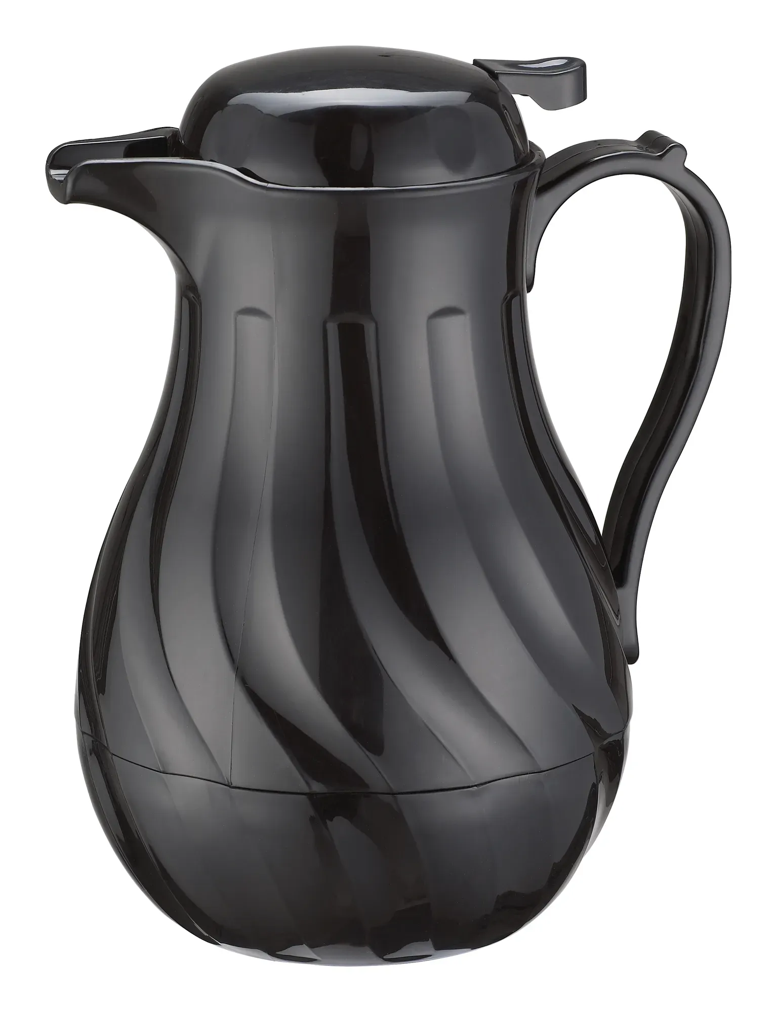 A kitchen essential using the Winco Beverage Server, this 20 oz. double wall insulated server is perfect for any restaurant setting. Designed with a sleek black plastic exterior and a stylish swirl design, it not only looks great but also performs exceptionally well. The double wall insulation ensures that your beverages stay at the desired temperature for longer periods, making it ideal for serving coffee, tea, or any other hot or cold drinks. The Winco Beverage Server comes with convenient push-button functionality, allowing for easy and efficient pouring. This feature is particularly useful during busy service times, ensuring that your staff can serve customers quickly and without hassle. Additionally, the server includes tags for regular, decaf, and tea, helping to keep your beverage station organized and reducing the risk of mix-ups. While the model number VSW-20K may not be the first thing your customers notice, it signifies the quality and reliability that Winco products are known for. This beverage server is NSF certified, ensuring it meets strict public health and safety standards, which is crucial for any food service establishment. Please note that this product is hand wash only, ensuring its longevity and maintaining its pristine condition. The Winco Beverage Server is a practical and stylish addition to any restaurant, enhancing both the efficiency of your service and the satisfaction of your customers.