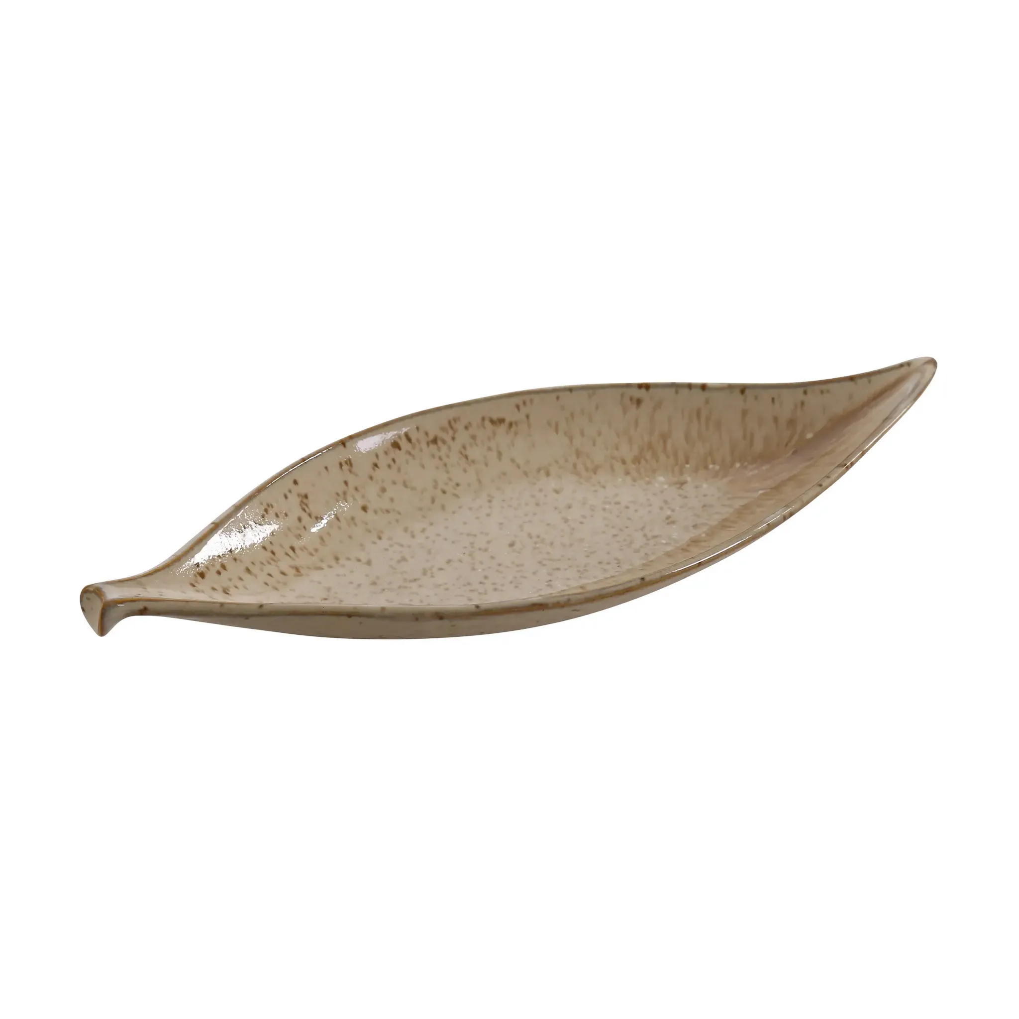 Upgrade your essential tools with the Yanco Agate Plate, a perfect blend of elegance and functionality for your restaurant setting. Measuring 12 inches in length and 4-1/2 inches in width, this leaf-shaped porcelain plate is designed to enhance the presentation of your culinary creations.