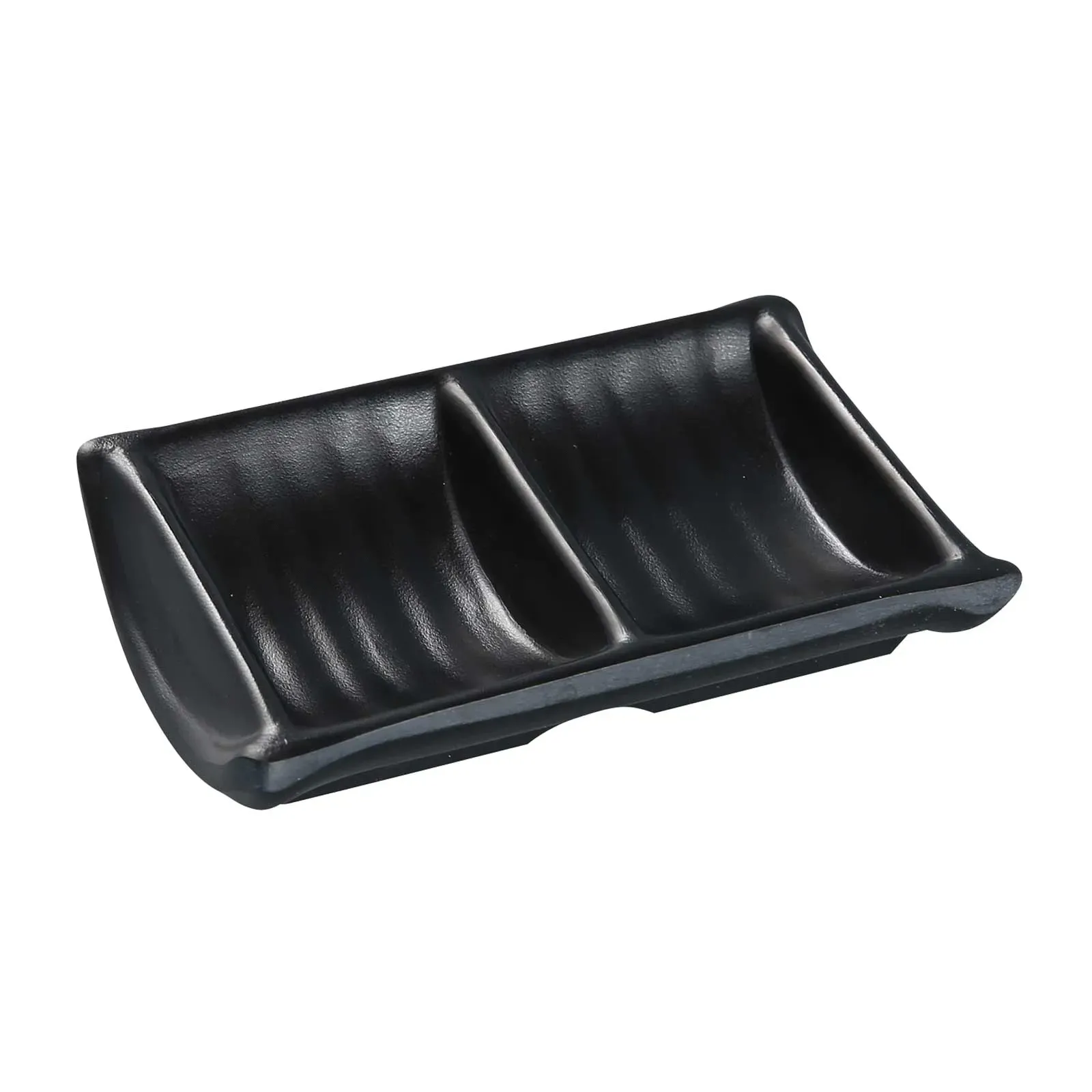 Crafted from durable melamine, this sauce dish is not only stylish but also built to withstand the rigors of a busy restaurant environment. The black color and Asian style, complemented by a matting surface, add a modern and elegant touch to your table settings, making it suitable for a variety of dining themes and cuisines.