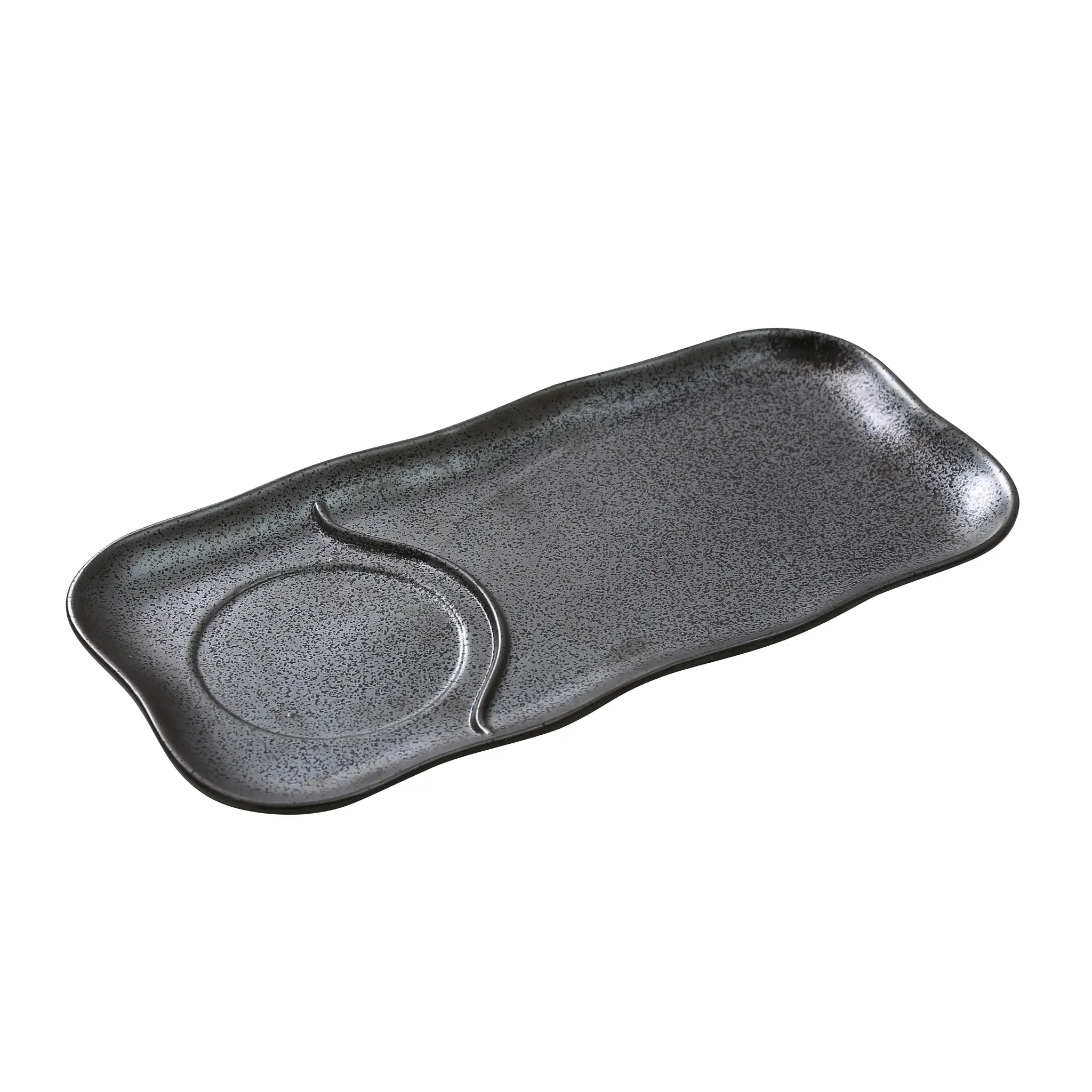Ensure consistent quality using the Yanco Diamond Black Compartment Plate. This elegant and functional plate, measuring 12 inches in length and 6 inches in width, is designed to elevate your restaurant's dining experience. The rectangular shape and sleek black porcelain finish make it a versatile addition to any table setting, seamlessly matching with the DB-4105 model for a cohesive look.