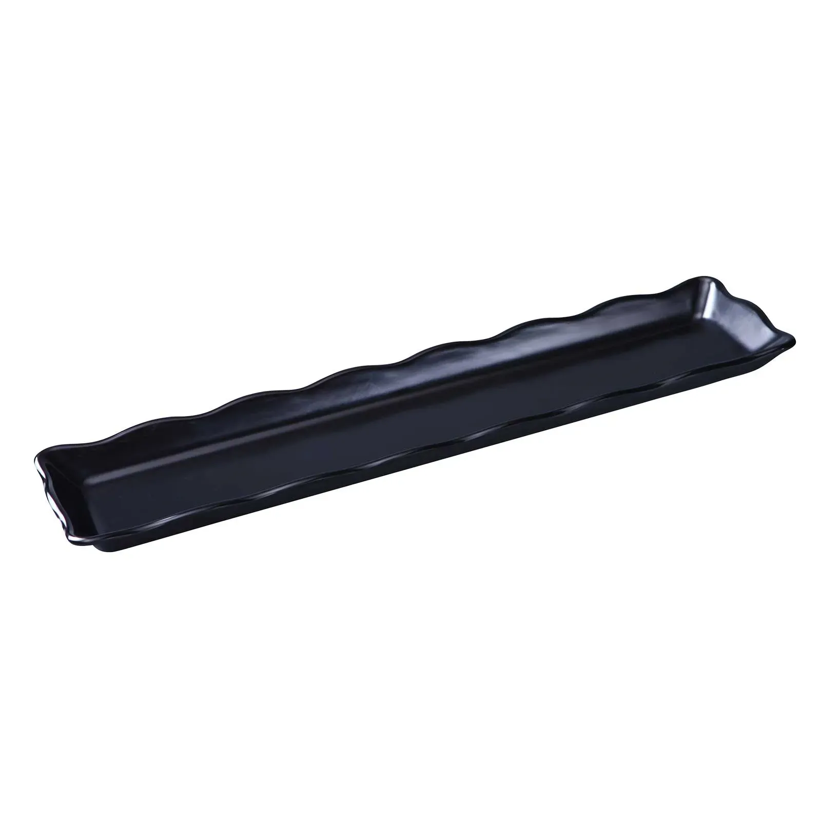 Crafted from durable melamine, the Yanco Serving Tray is both lightweight and sturdy, ensuring it can withstand the rigors of daily use in a busy restaurant environment. The black color adds a touch of sophistication, while the rectangular shape and scalloped edge provide a unique and stylish look that will impress your guests.