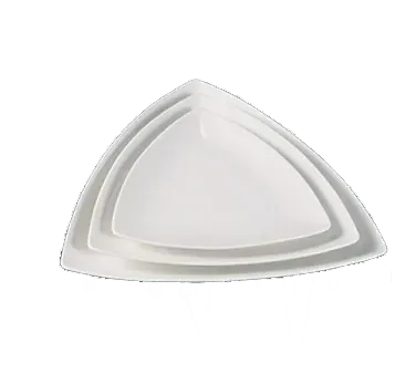 Transform your cooking routine using the Yanco Fuji Plate. This elegant 8"L x 8"W porcelain plate is designed to elevate your restaurant's dining experience. The triangular, coupe shape adds a modern and sophisticated touch to your table settings, making it perfect for presenting a variety of dishes with style and flair.