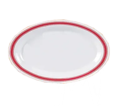 Crafted from durable melamine, the Yanco Houston Platter is built to withstand the rigors of daily use while maintaining its pristine appearance. The extra heavy weight of the platter ensures stability and durability, making it a reliable choice for busy kitchens. The red band on a white background adds a classic and sophisticated touch, enhancing the visual appeal of your culinary creations.