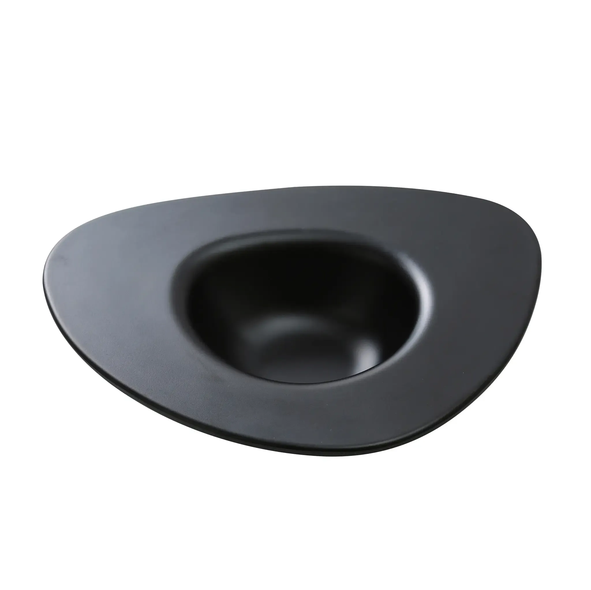 Crafted from durable melamine, the Yanco Moderne Dessert Plate is both lightweight and robust, making it an ideal choice for busy restaurant environments. Its triangular shape adds a unique touch to your table settings, ensuring that your desserts stand out and leave a lasting impression on your guests. The matte black finish further enhances its sophisticated look, complementing a wide range of dining decors.
