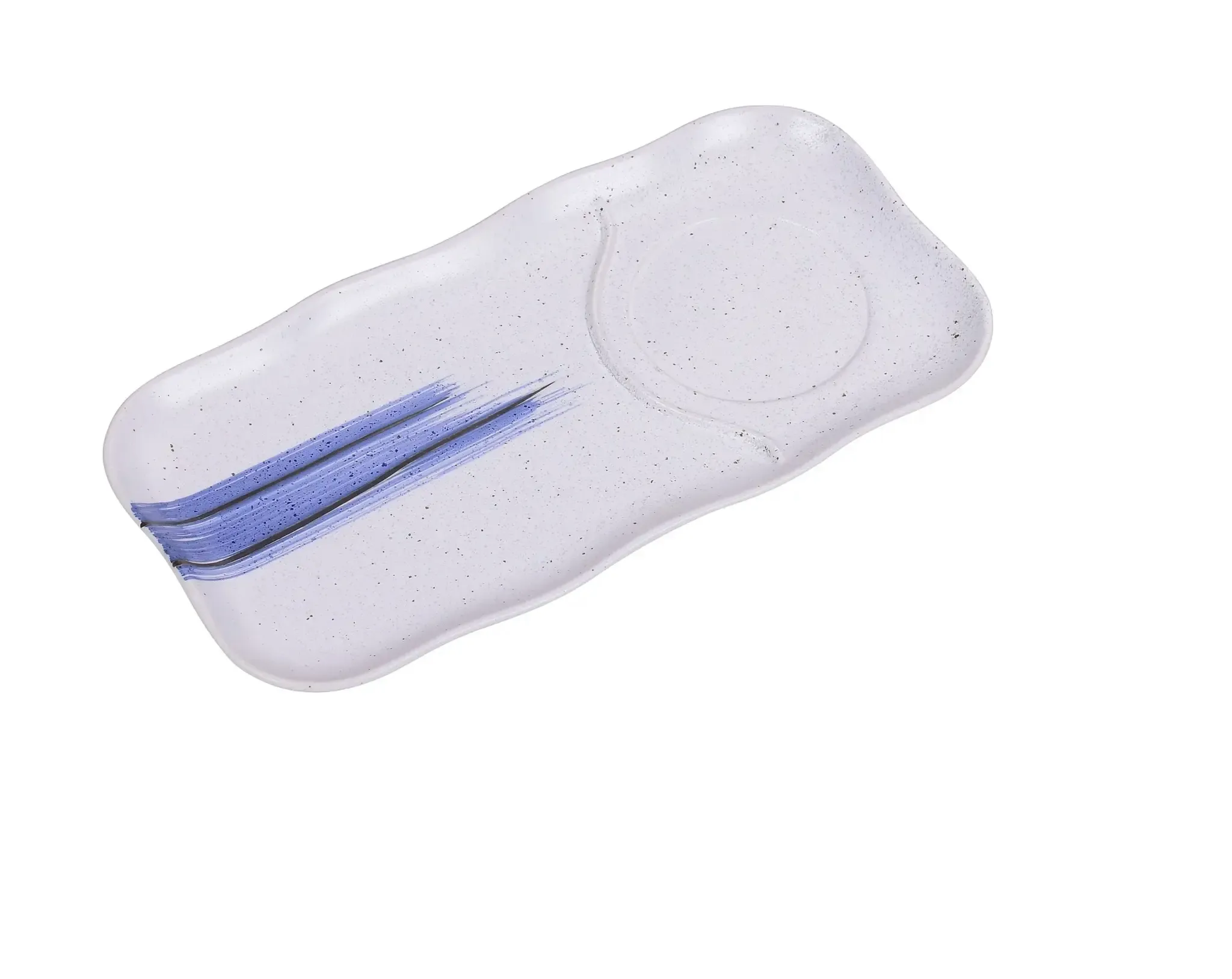 These eye-catching tabletop items from the Ocean collection exude an aged vibe that contributes well to the dining experience. The faded blue rims combined with the rough texture give the products character.