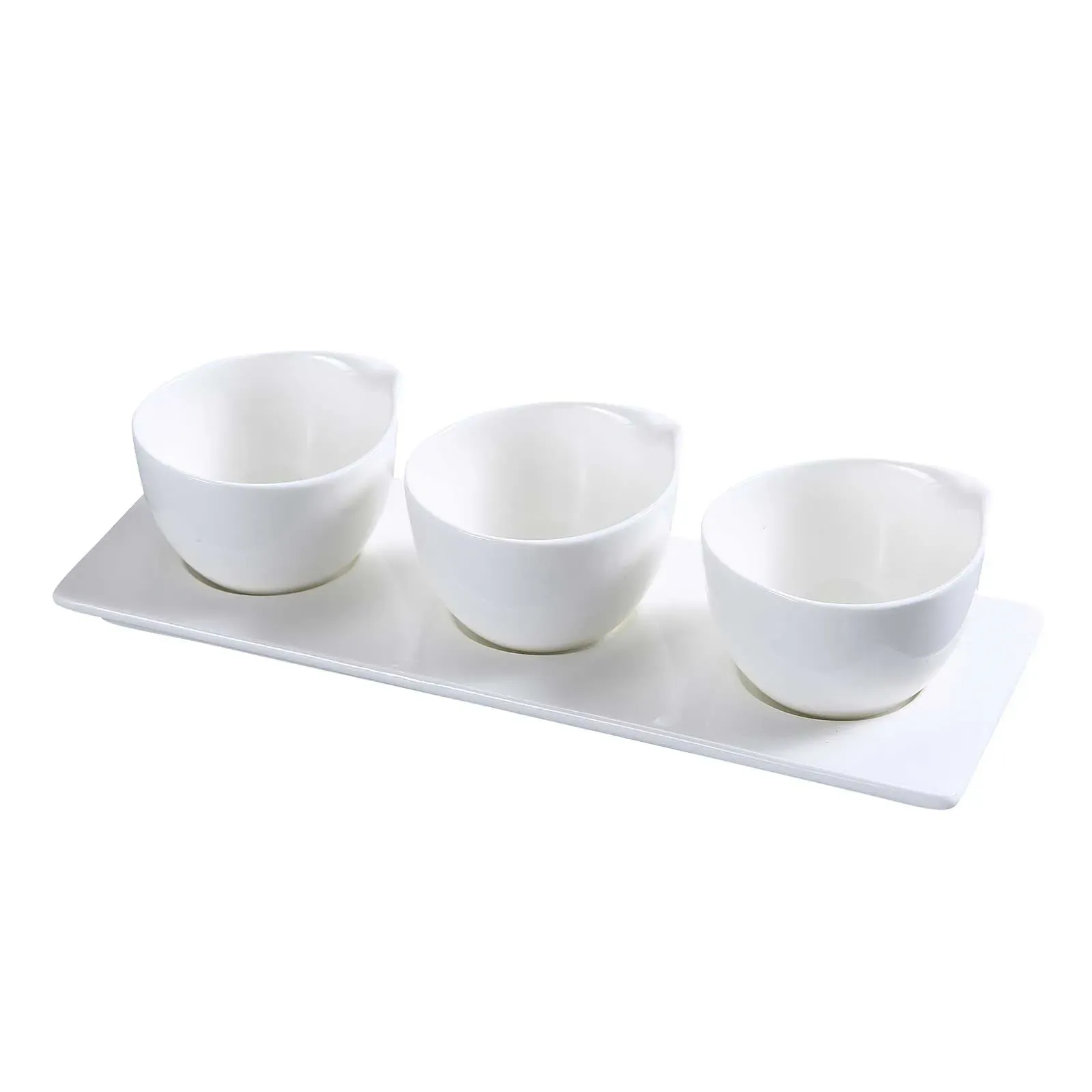 Accompanying the cups is a sleek 10-1/2" x 3-1/2" tray, also made of porcelain, which provides a stylish and practical way to present the tasting cups to your guests. The tray's design not only adds a touch of sophistication but also makes it easy for your staff to serve and clear multiple items at once, enhancing efficiency in a busy restaurant environment.