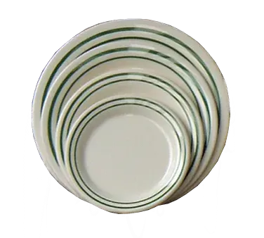 The Yanco Pine Tree Dinner Plate features a sophisticated green band on a beige background, adding a touch of elegance to your table settings. Its classic design seamlessly complements a variety of restaurant décors, from casual eateries to upscale dining rooms. The plate's round shape provides ample space for presenting your culinary creations beautifully, enhancing the dining experience for your guests.
