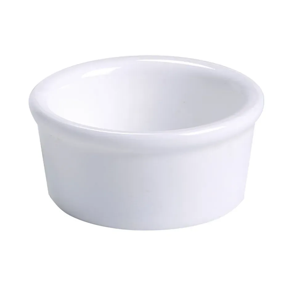 Achieve superior performance with the Yanco Ramekin Dish, a must-have accessory for any restaurant setting. This elegant 2-1/2 oz. ramekin, model RK-203, boasts a 2-3/4" diameter and stands 1-1/4" high, making it the perfect size for serving sauces, dips, and small portions of desserts.