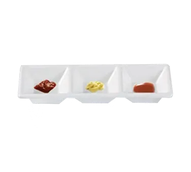 Maintain high standards in your kitchen with the Yanco Rome Dessert Dish. This elegant and functional dish, measuring 7-1/2 inches in length and 2-1/2 inches in width, is designed to elevate your dessert presentation. The Rome Dessert Dish features three compartments, making it perfect for serving a variety of desserts or accompaniments in a single, stylish plate.