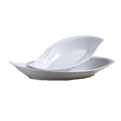 Crafted in a unique leaf shape, the Venice Plate adds a touch of sophistication to any table setting. Its pristine white color provides a clean, modern backdrop that enhances the visual appeal of your dishes. Made from durable melamine, this plate is designed to withstand the rigors of a busy restaurant environment while maintaining its elegant appearance.